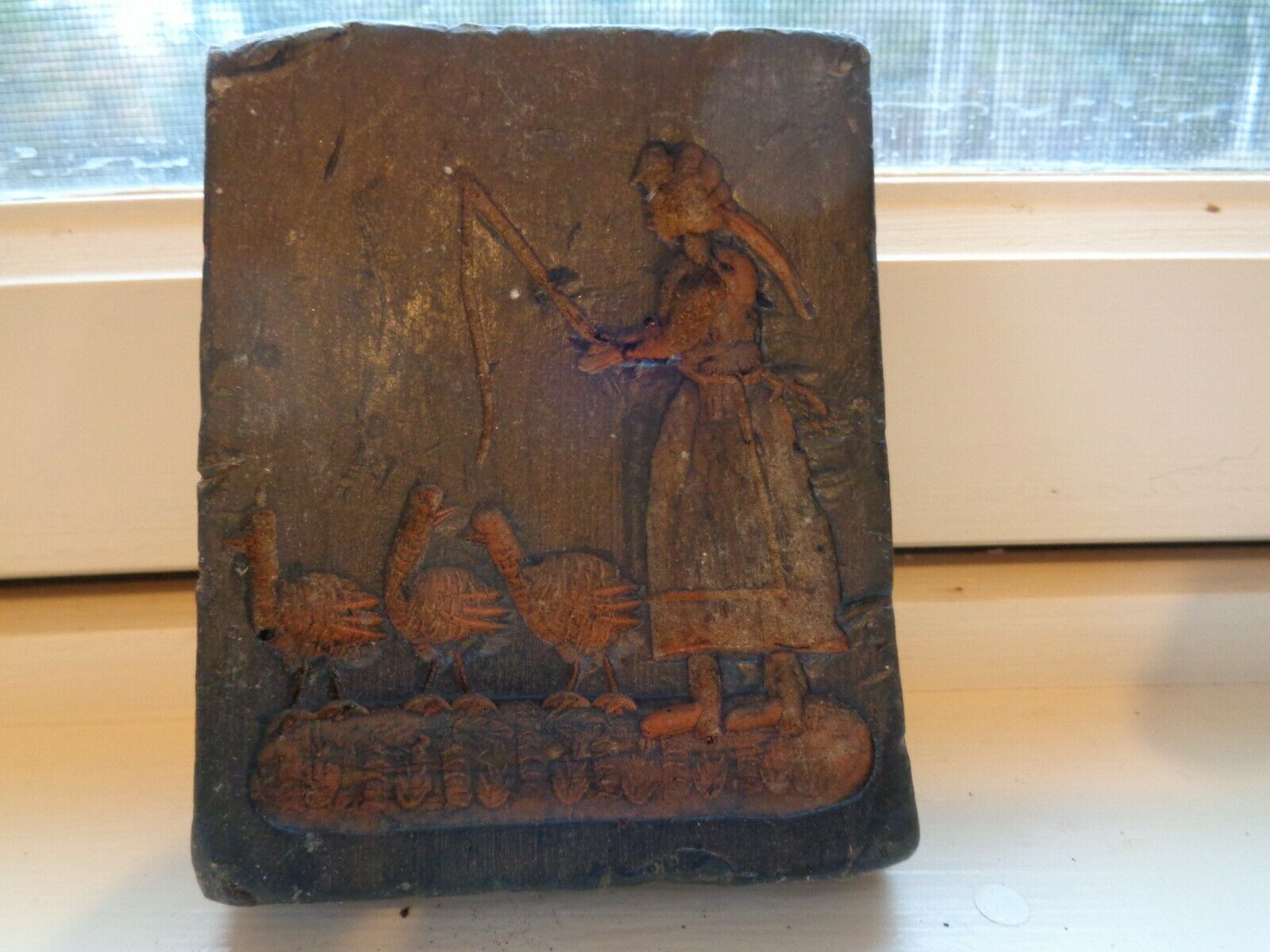 BUTTER MOLD STAMP WAX PEASANT GIRL BIRDS
