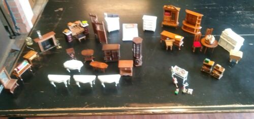 Huge Lot of Vintage Wooden Dollhouse Furniture 44 Pcs 1:12 Scale