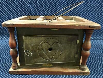 Antique Pierced Tin/Wood Foot Warmer with Original Insert & Stone