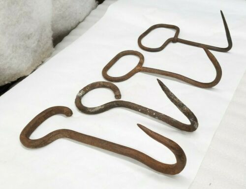 ANTIQUE BLACKSMITH HAND-FORGED IRON HAY BALE / MEAT HOOKS Farm Decor