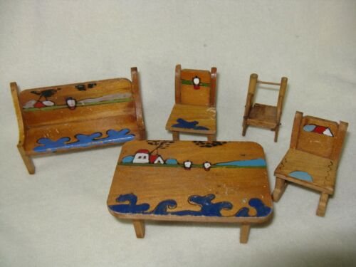 4 pc. Antique Vintage, Wood Doll House Furniture, Painted scene on them - Japan