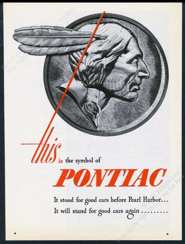Title (ebay affiliate link): 1945 Pontiac car Native American Indian head logo vintage print ad