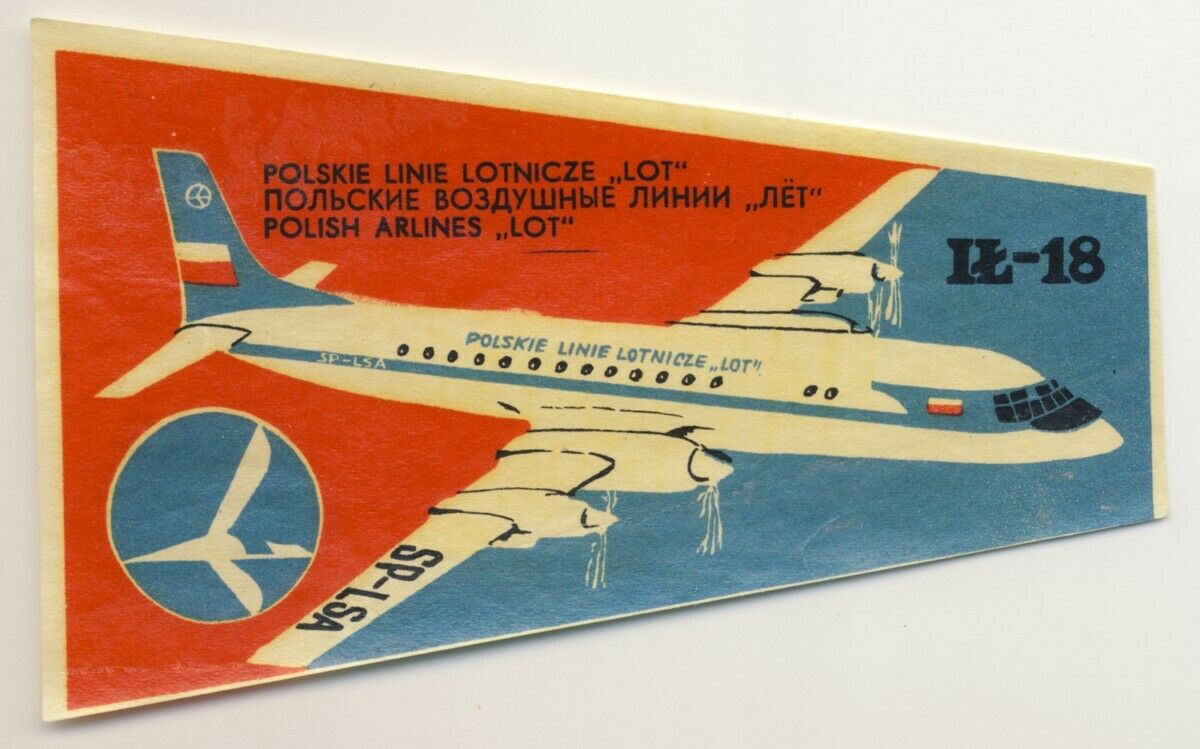 Original 1950s Airline Luggage Label LOT Polish Airlines