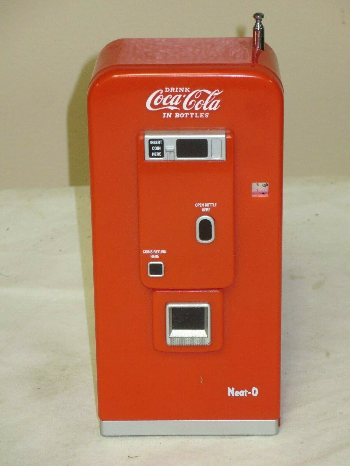 Title (ebay affiliate link): VINTAGE NEAT-O COCA COLA MINI TRANSISTOR VENDING MACHINE RADIO RARE AWESOME EX.