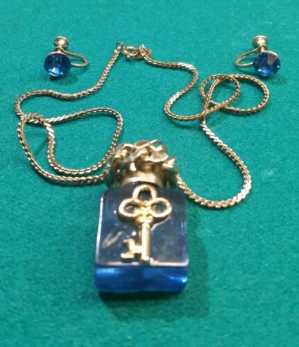 Title (ebay affiliate link): Vintage Blue Pendant Perfurm Bottle Key Design chain Necklace with Blue Earrings