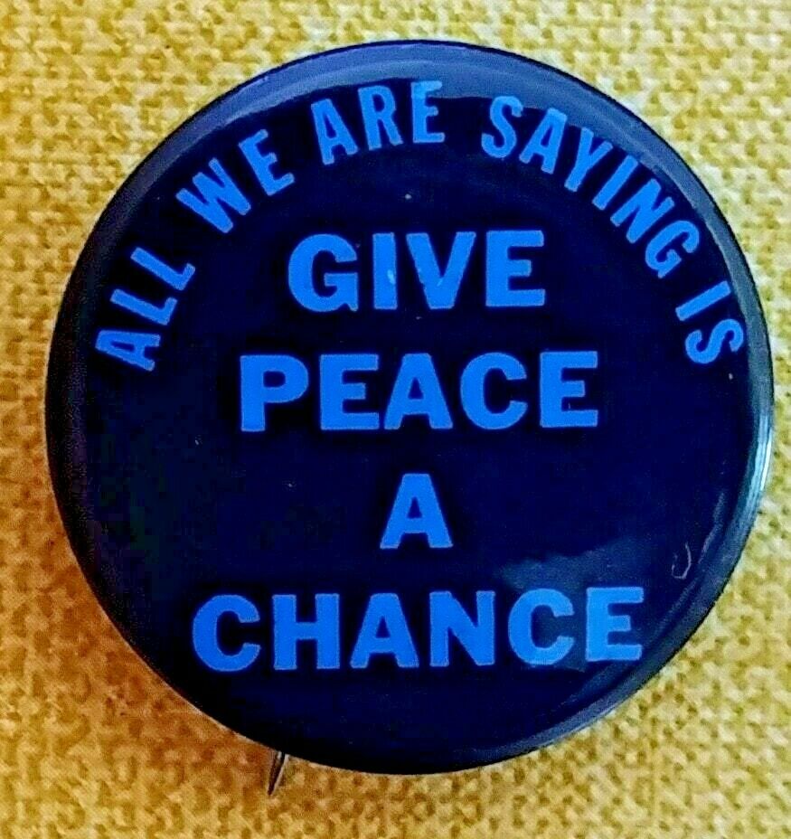 Title (ebay affiliate link): ALL WE ARE SAYING IS GIVE PEACE A CHANCE. 1969 JOHN LENNON ANTI WAR PIN - BLUE