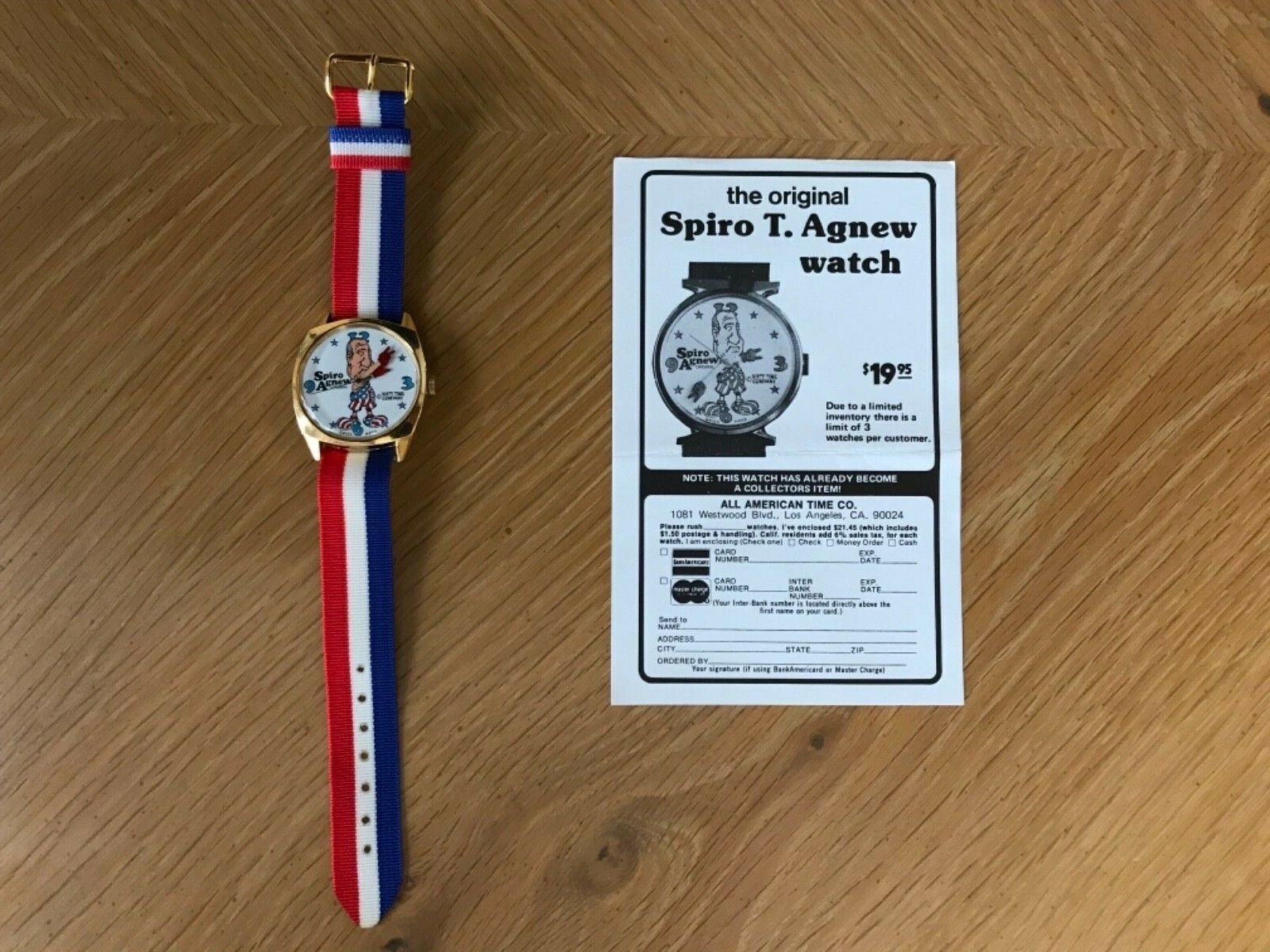 Title (ebay affiliate link): Vintage Mechanical Spiro T. Agnew Watch Swiss Made Original Band and Order Form