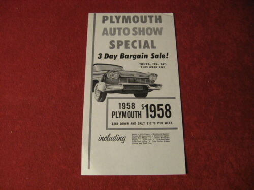 Title (ebay affiliate link): 1958 Plymouth Auto Show Flyer Sales Brochure Booklet Catalog Book Original Old