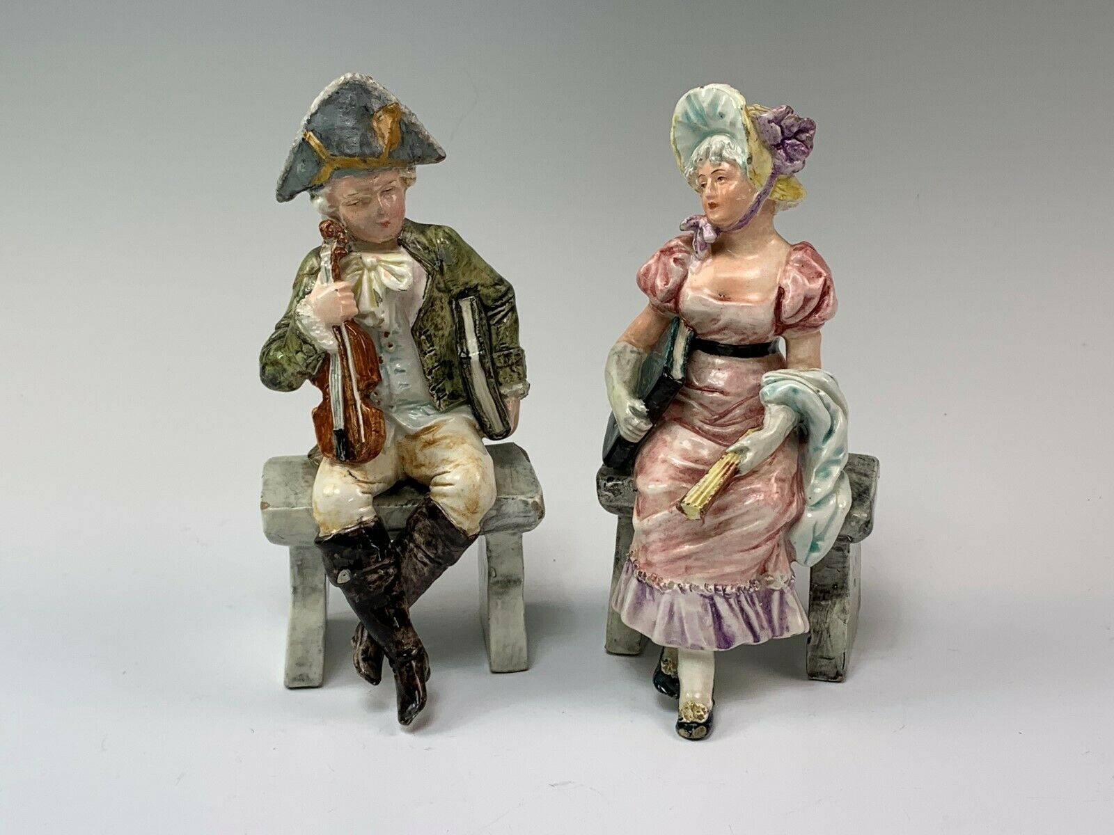 Pair Antique Royal Dux Bohemia Figures of Man & Woman, As-Is