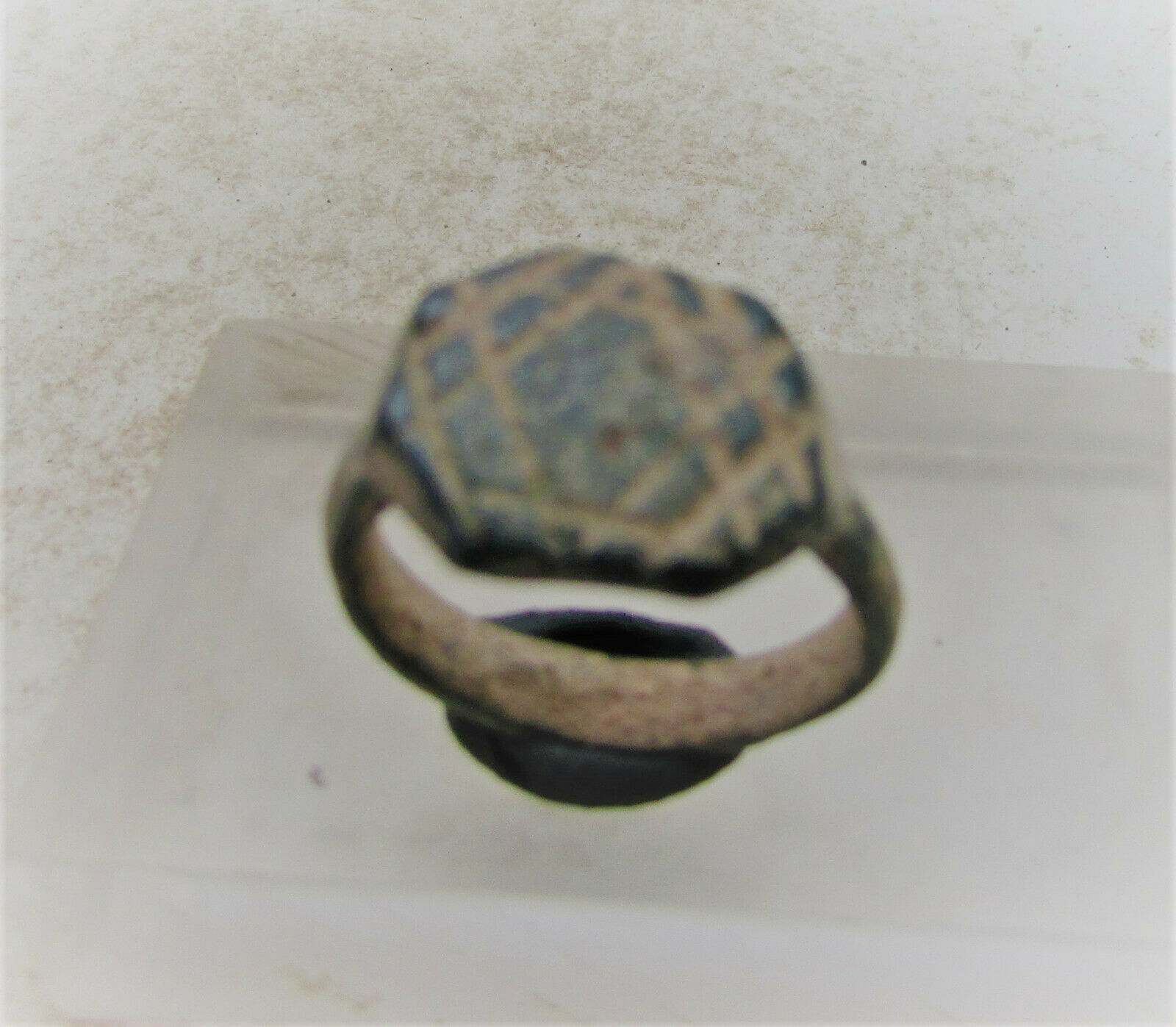 SUPERB ANCIENT ROMAN BRONZE RING WITH ENGRAVINGS ON BEZEL