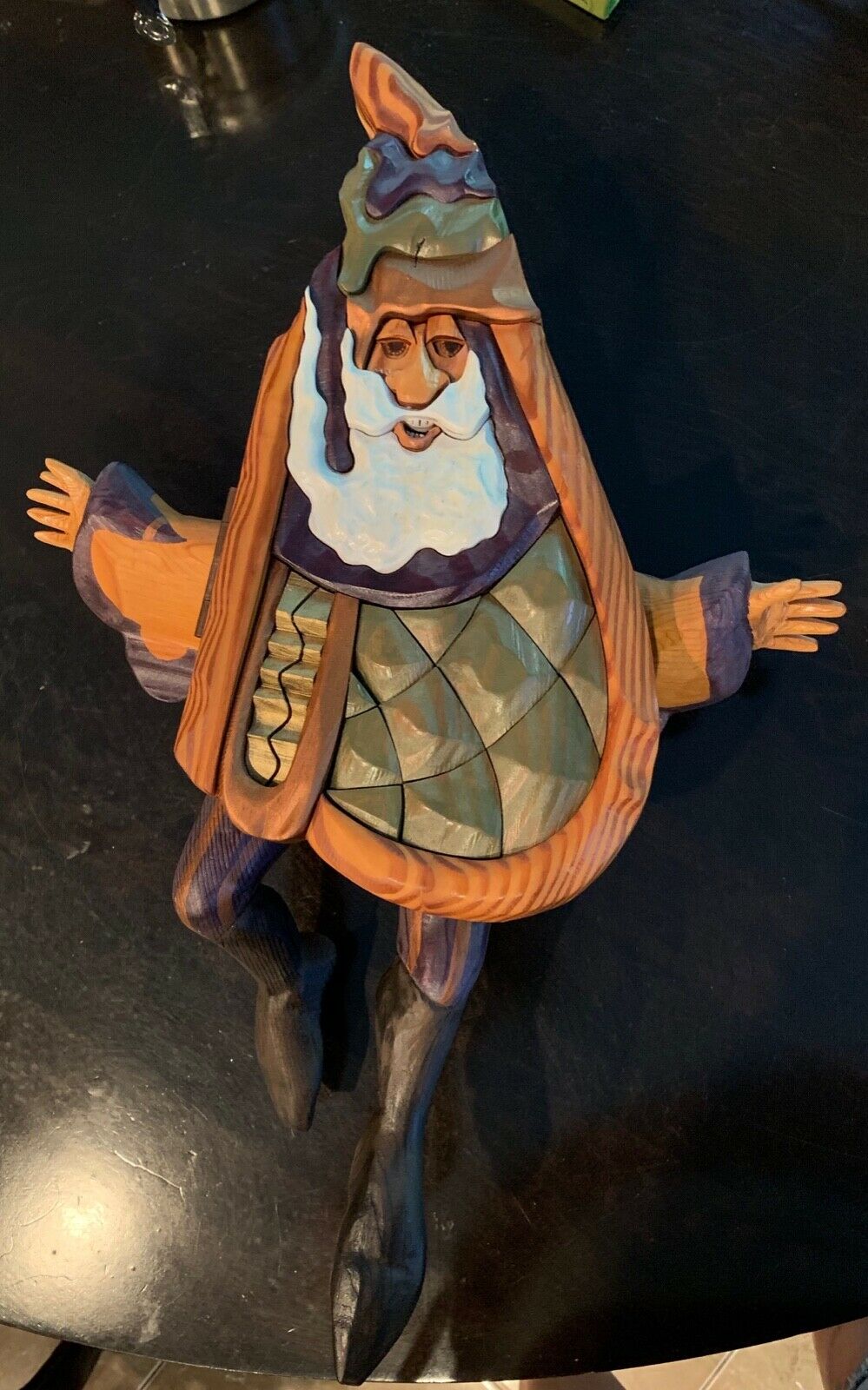 HAND CARVED WOOD FIGURE /DOOR JEWELRY STASH BOX SIGNED R PITZ Robert A. Pitz