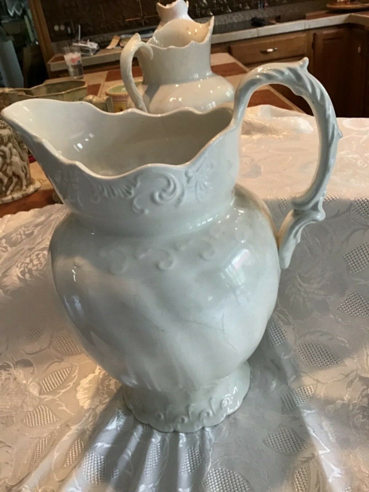 VINTAGE WHITE ANTIQUE SOROSIS PITCHER 12 INCHES
