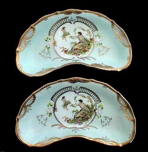 Antique Pair of Hand Painted & Gilt Bone/Salad Side Plates