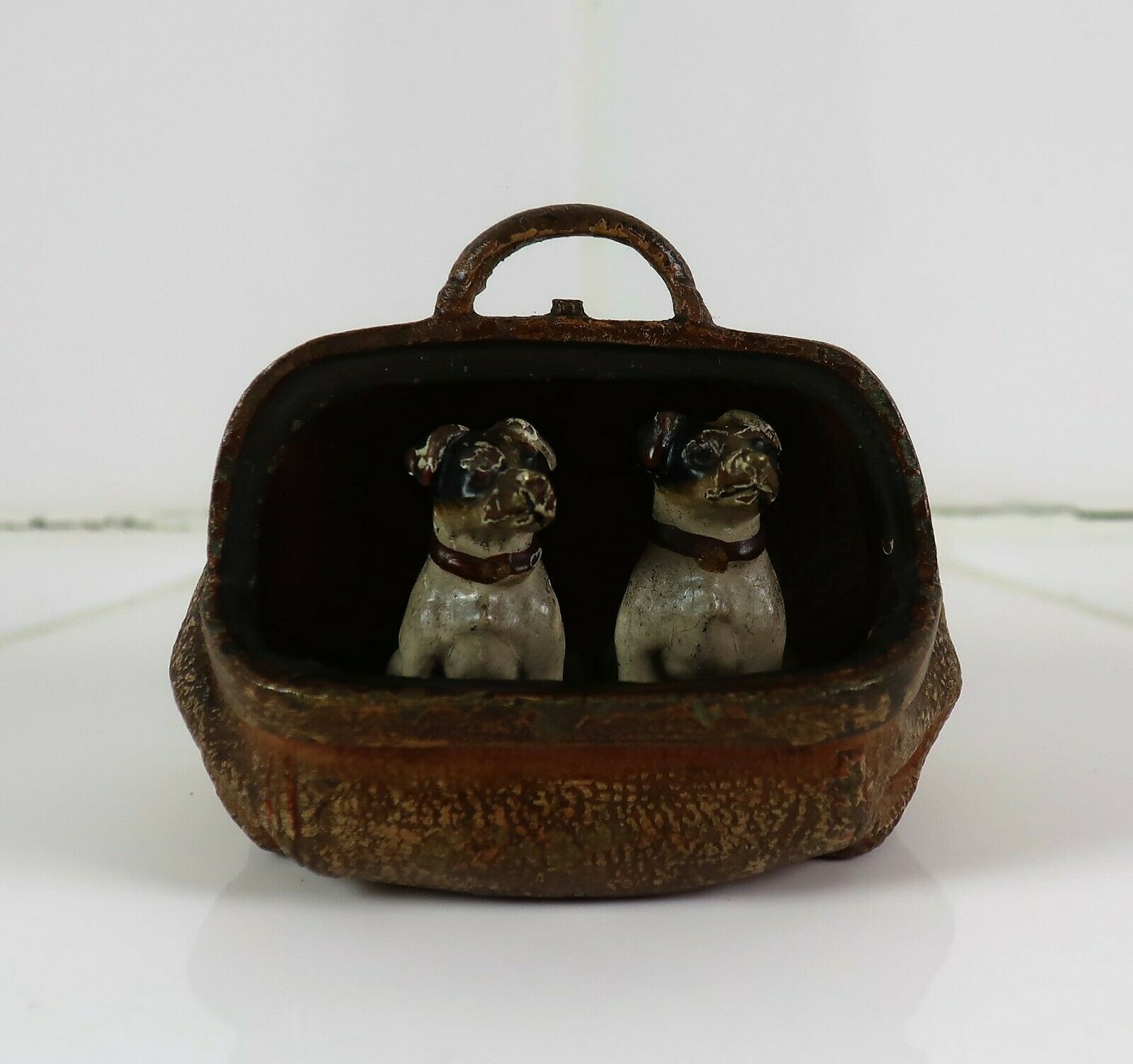 Small & Adorable Vienna Cold-Painted Bronze: Two Dogs in a Suitcase or Handbag
