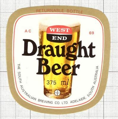 AUSTRALIA SAB,Adelaide West End Draught Beer 375mL AC69 beer label C1687