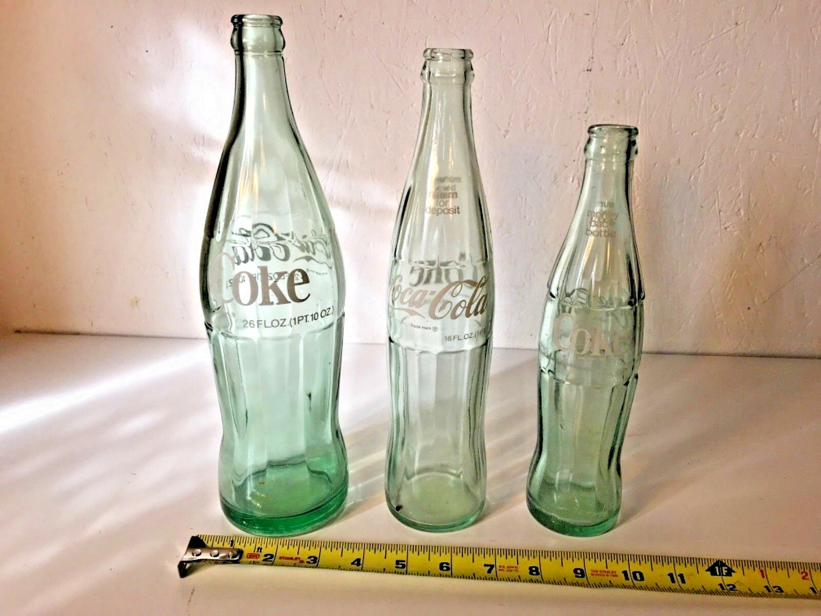 Title (ebay affiliate link): 3 Different Sized Vintage Coke Coca-Cola Bottles - 10 - 16 - 26 OZ. - Nice!