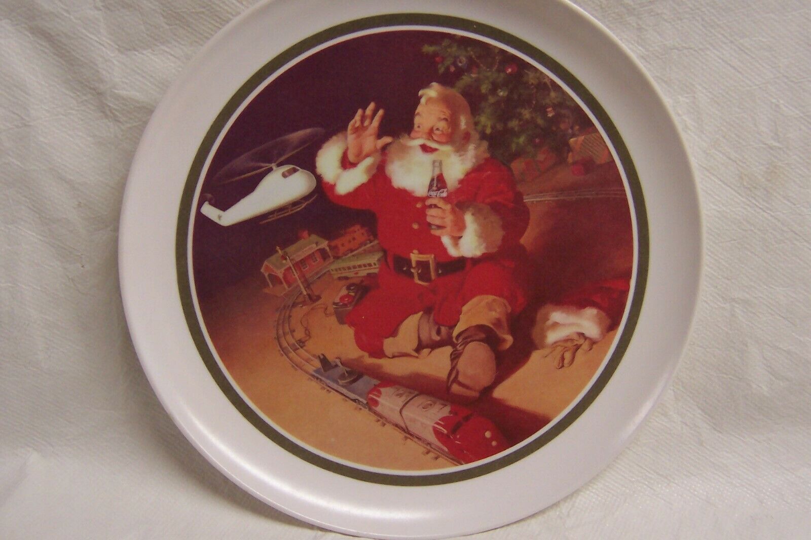 Title (ebay affiliate link): 1970''s Coca Cola Collector Christmas Santa Plate Helicopter Train Toys