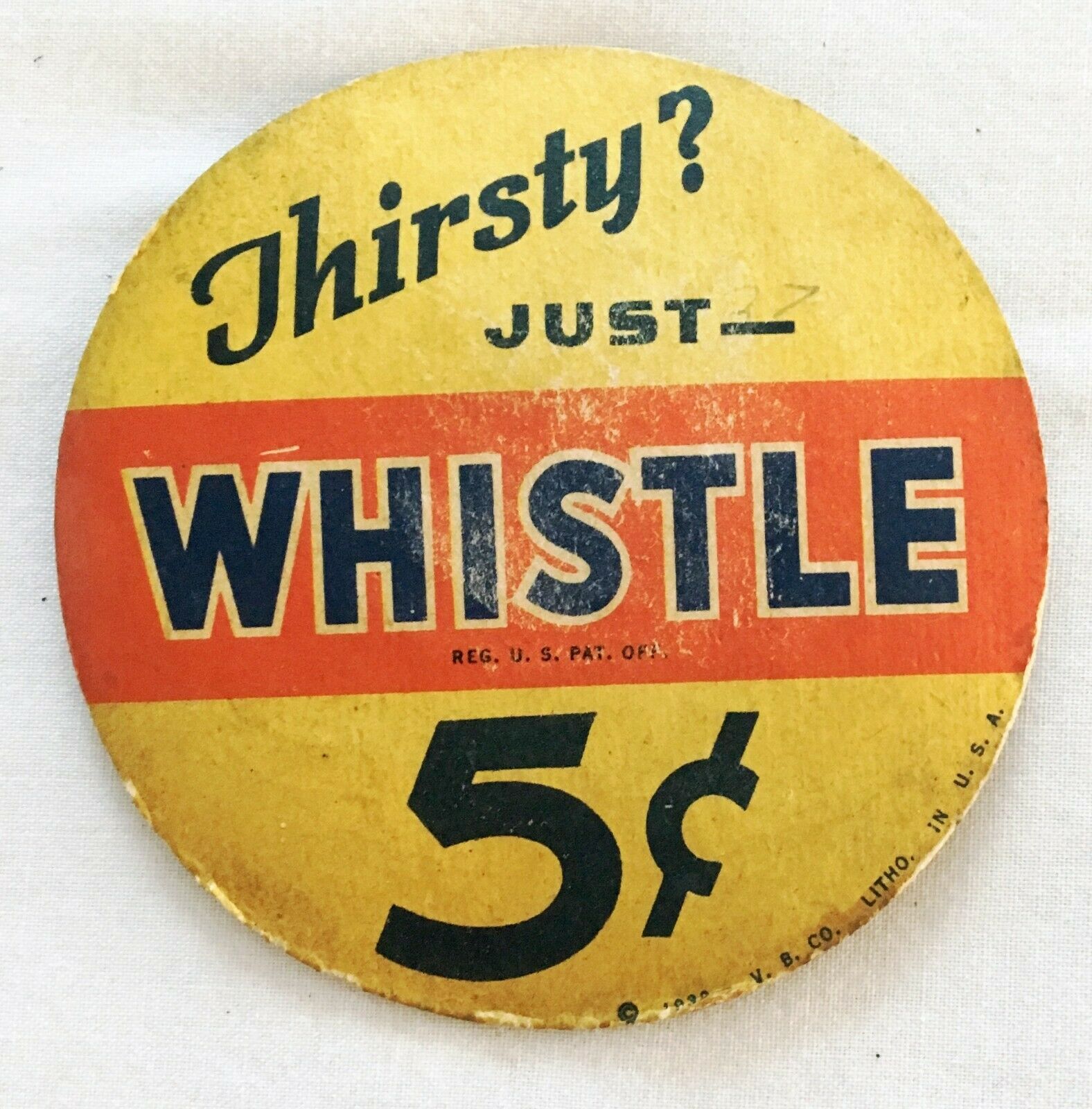 1939 Whistle Soda Pop Coaster Dated 1939