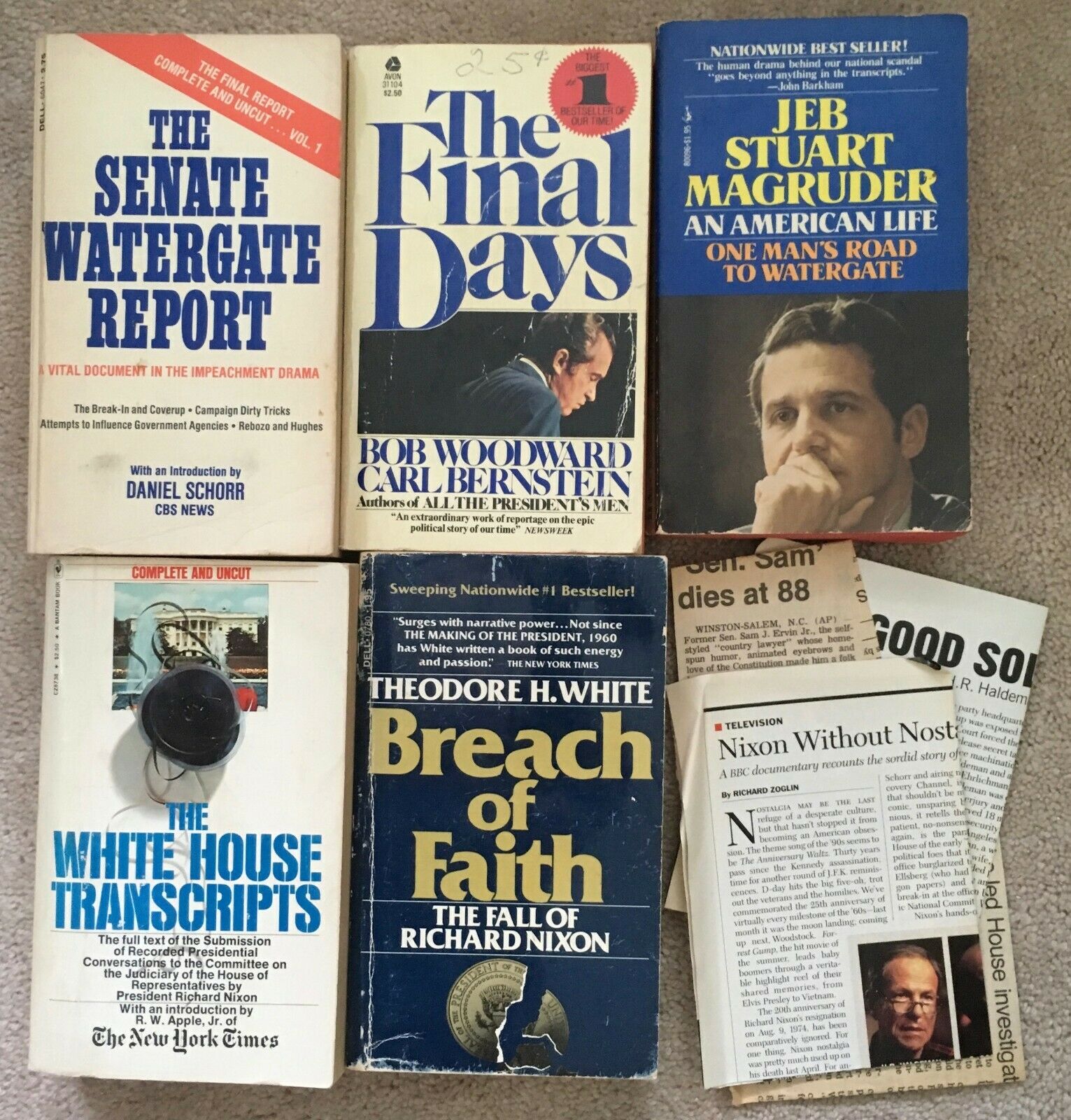 Lot 5 Watergate Richard Nixon, White White Transcripts, Woodward/Bernstein clips