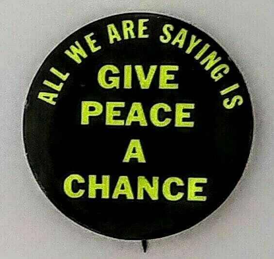 Title (ebay affiliate link): ALL WE ARE SAYING IS GIVE PEACE A CHANCE. 1969 JOHN LENNON ANTI WAR PIN - YELLOW