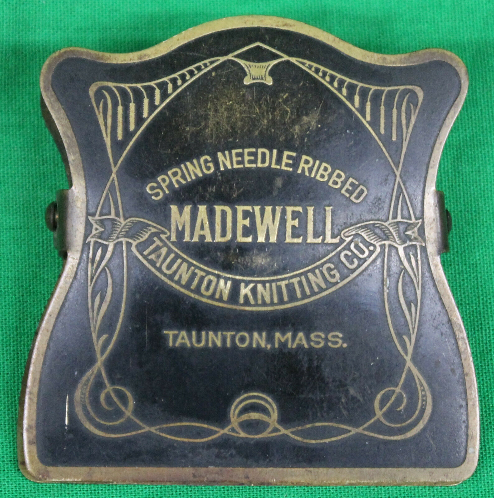 Title (ebay affiliate link): Original Vintage Taunton Knitting Co. Madewell Brass Advertising Clip