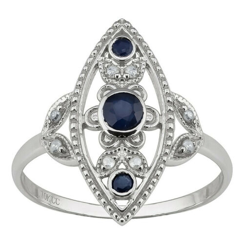 Title (ebay affiliate link): 10k White Gold Antique Style Genuine Round Sapphire and Diamond Ring size 6