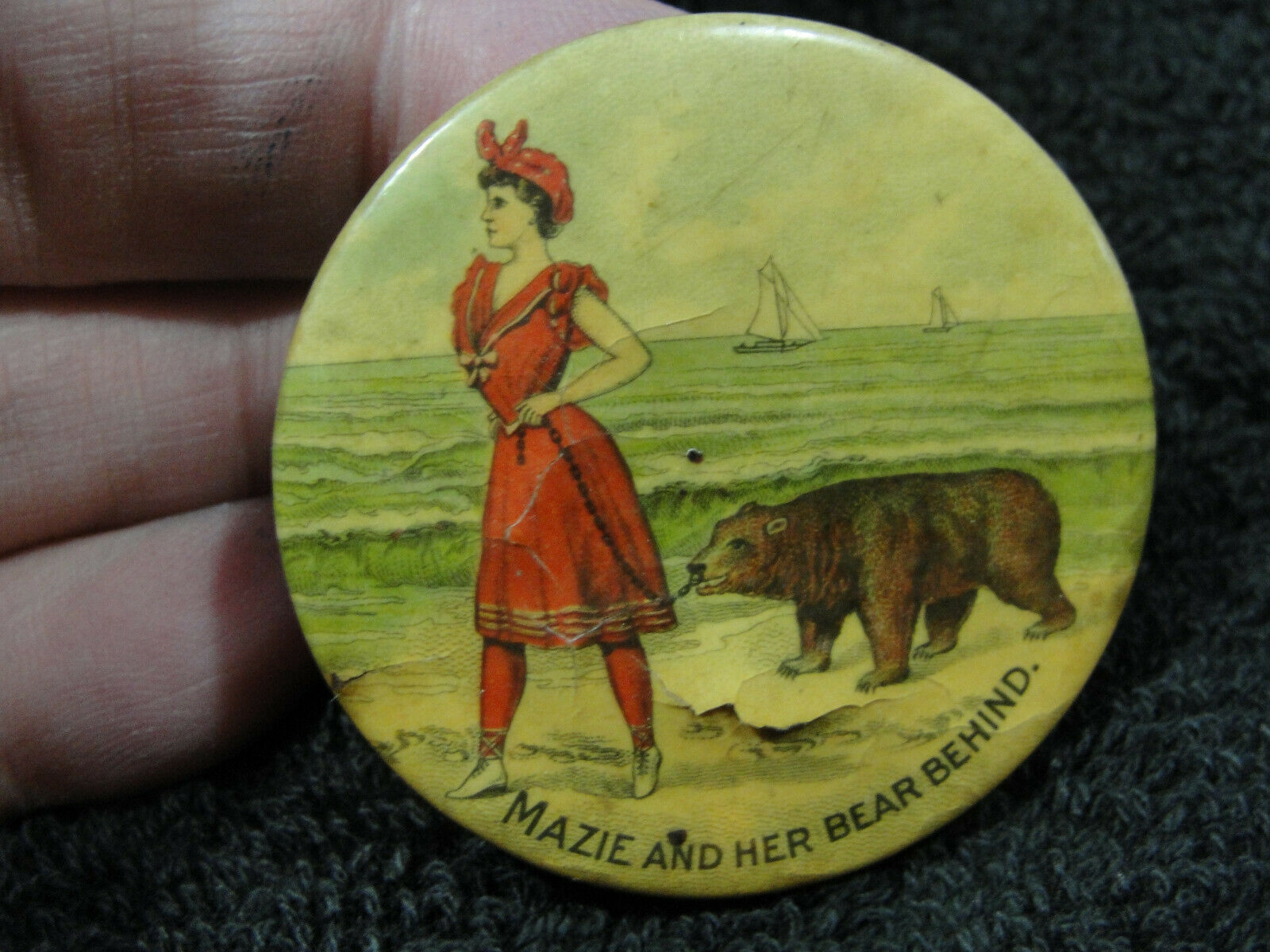 Title (ebay affiliate link): RARE ANTIQUE EARLY 1900''S MAZIE AND HER BEAR "BARE" BEHIND POCKET MIRROR 1 3/4"