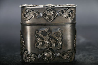 Chinese old copper plating silver hand carved dragon Tobacco box b01
