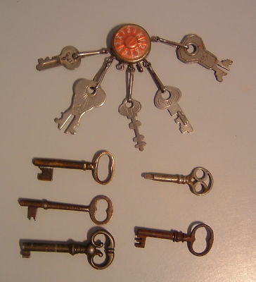 lot 10 vintage keys brass-R & E steel-skeleton-padlock