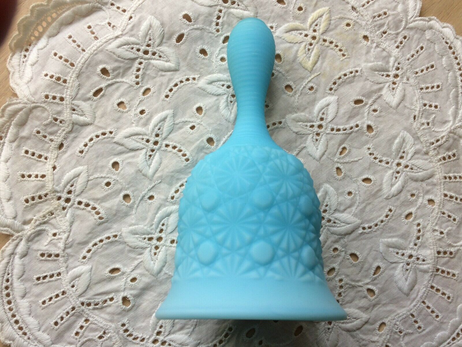 Vintage FENTON BELL Turquoise Milk Glass Daisy & Button Pattern
