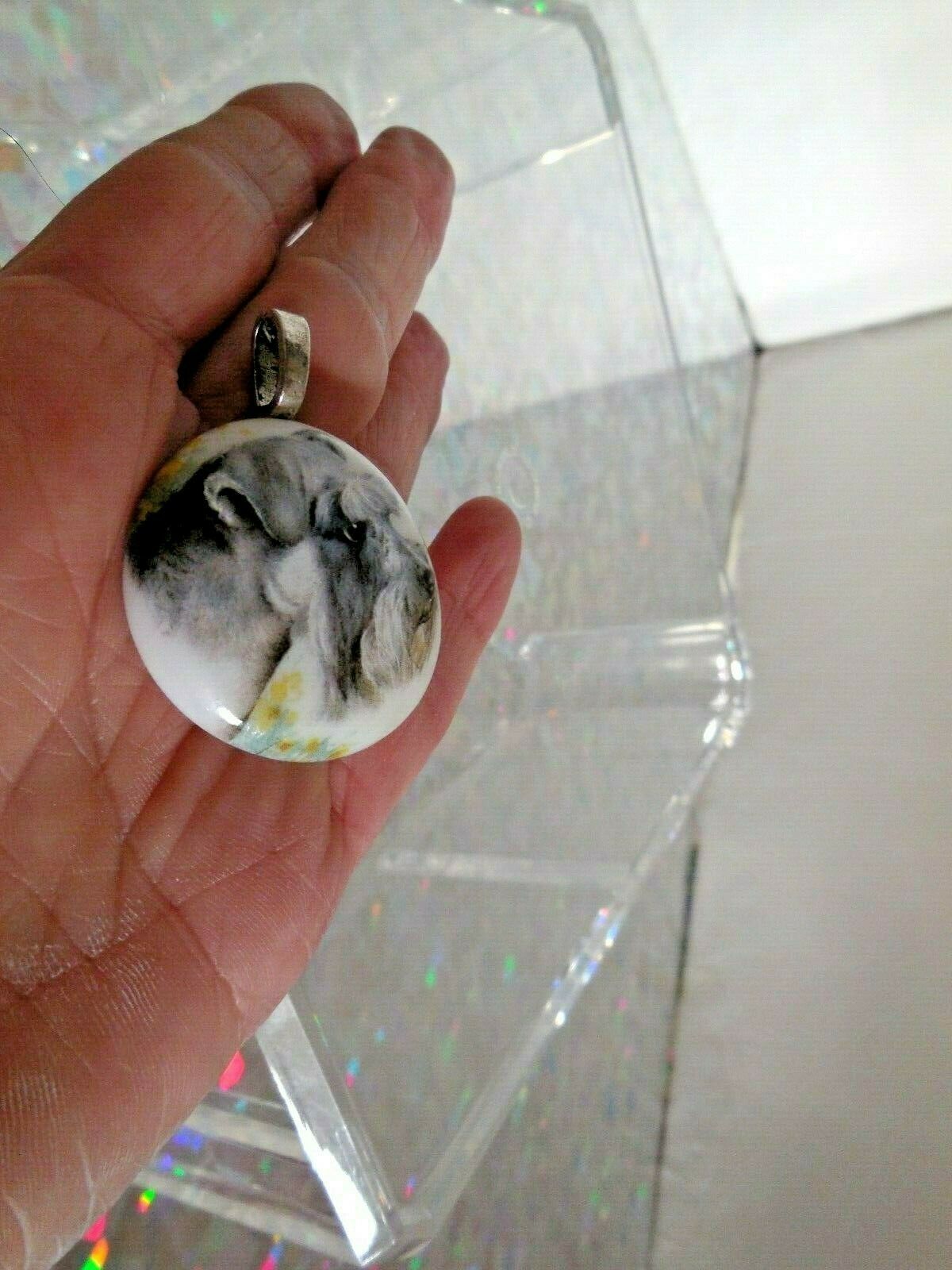 Title (ebay affiliate link): Schnauzer Milk Glass Artisan-Crafted, Painted, Pendant, 70''s Circa, EUC