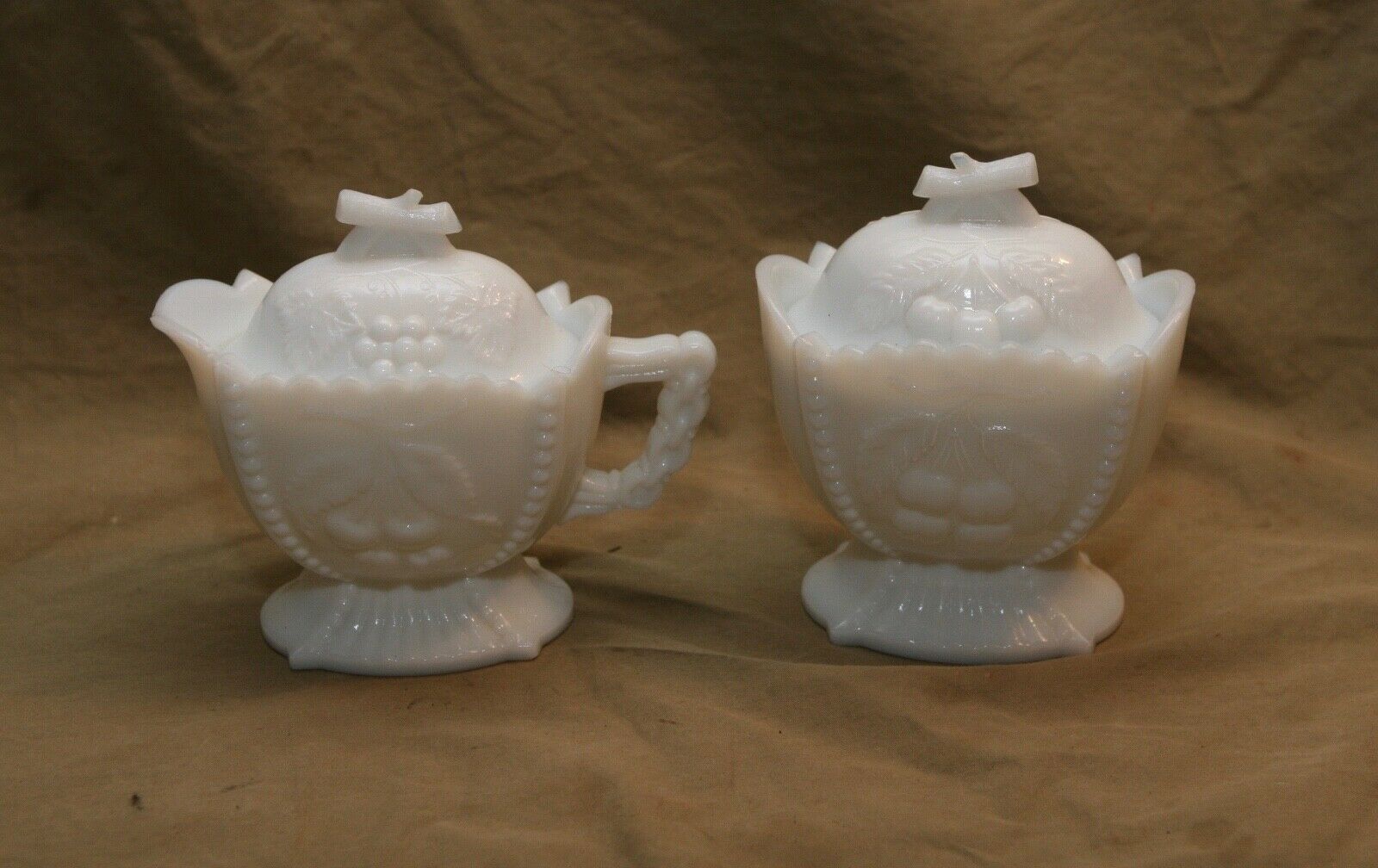 Vintage Antique Westmoreland Fruit Decorated Milk Glass Creamer Sugar