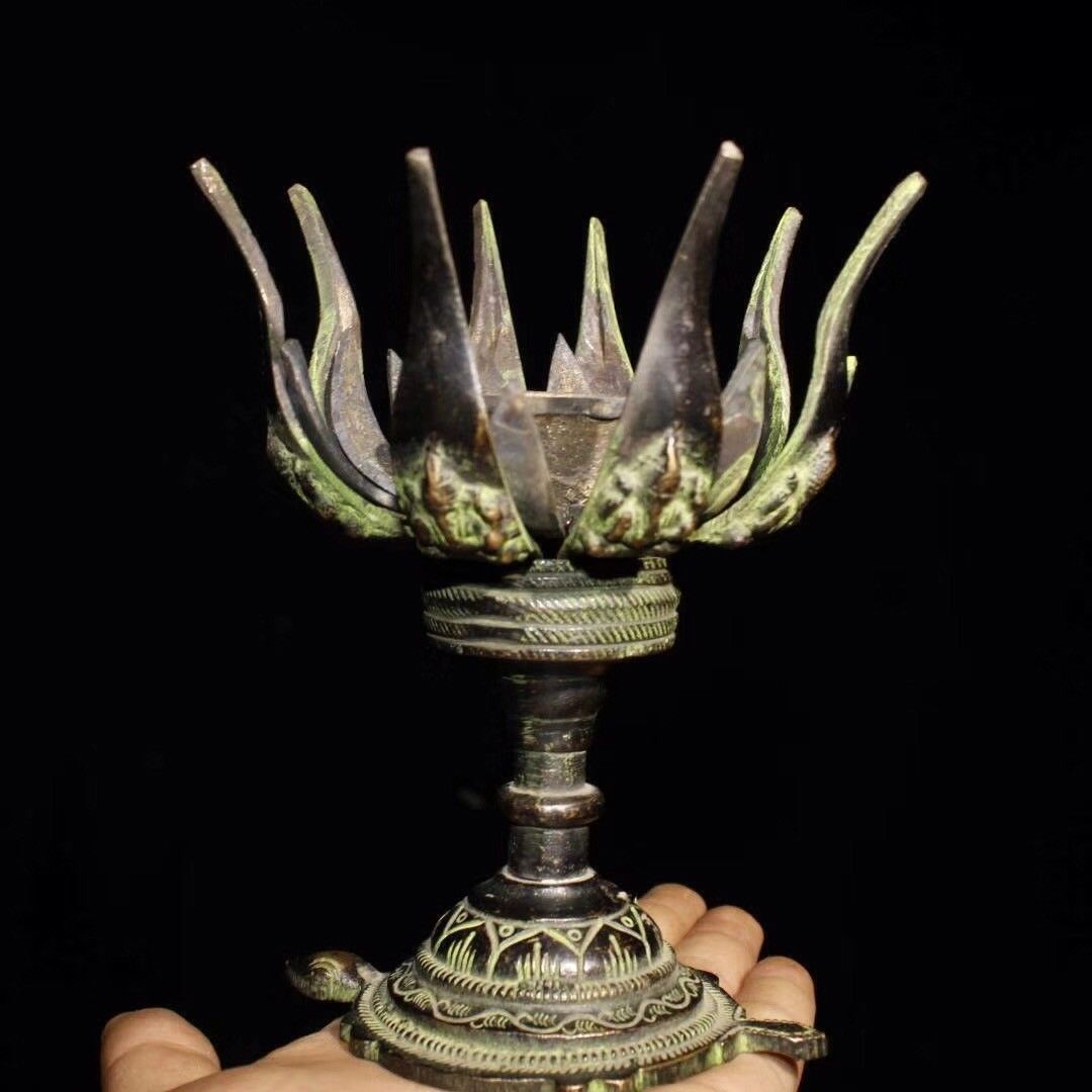 Chinese Antique Tibetan Buddhism Old Bronze Lotus Lamp Oil lamp