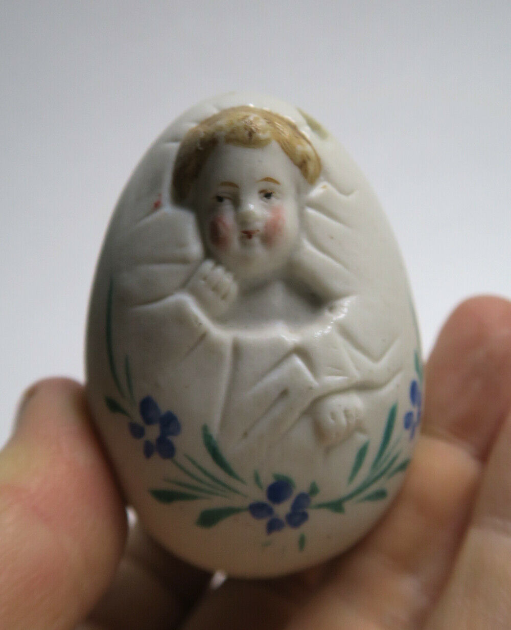 baby egg Bisque porcelain Figurine Antique Vintage unmarked Germany rare handpai