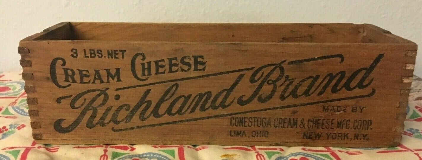 Title (ebay affiliate link): Antique Vintage RICHLAND Conestoga Wooden Cheese Box Lima Ohio N.Y. 3 lb Crate
