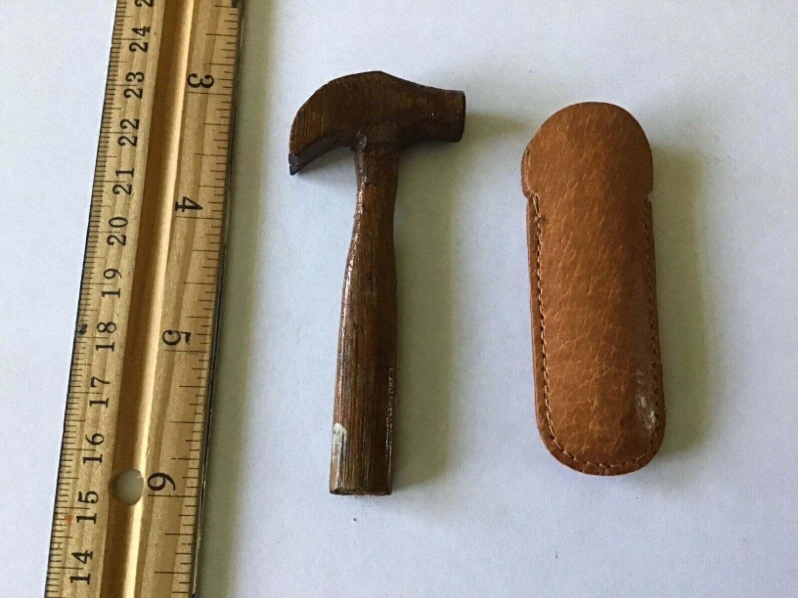 Title (ebay affiliate link): ANTIQUE VINTAGE MINIATURE WOODEN HAND CARVED HAMMER FOLK ART WITH LEATHER CASE