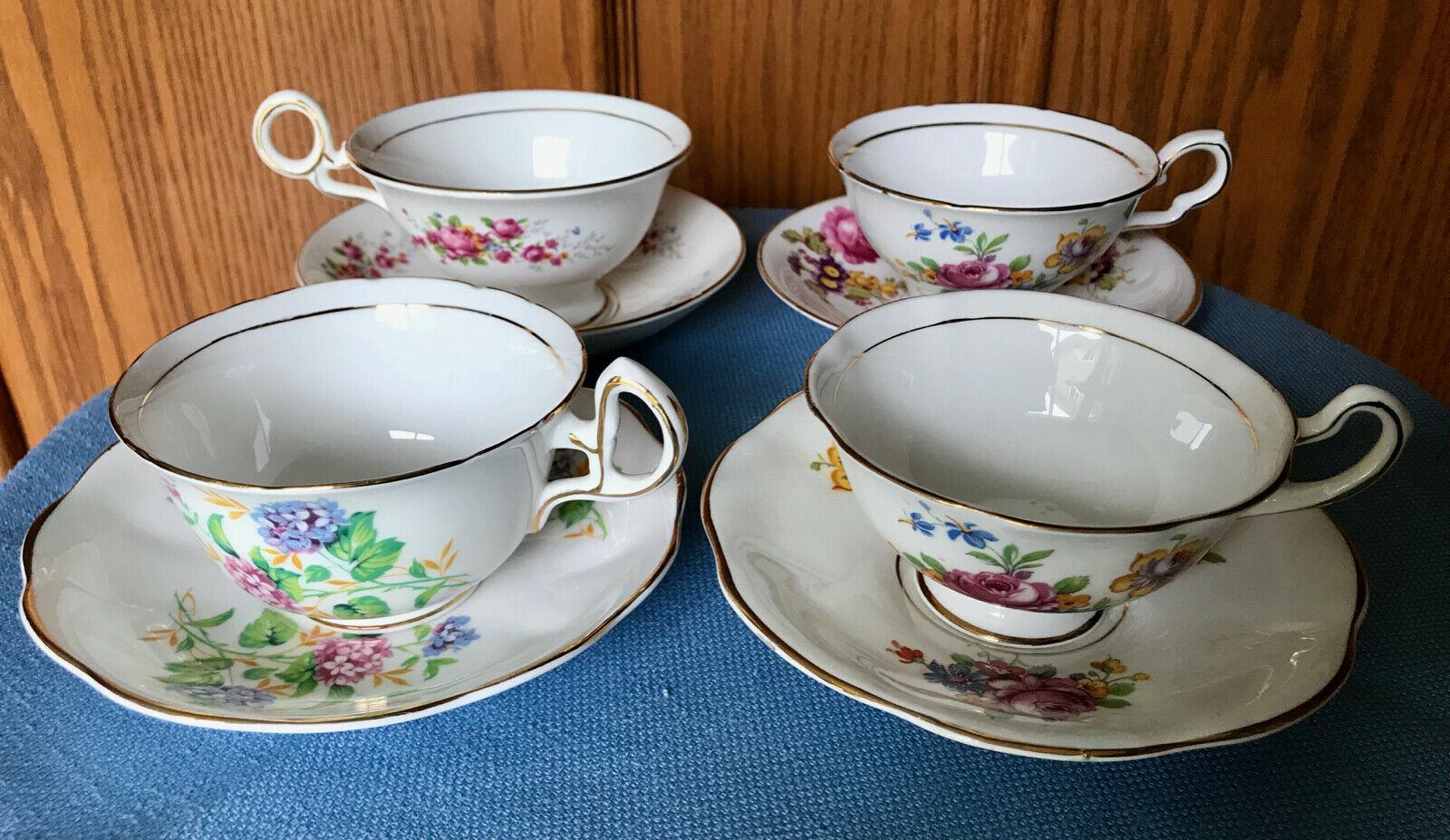 Vintage Floral Tea Cups and Saucers Bone China Made in England Lot of 4