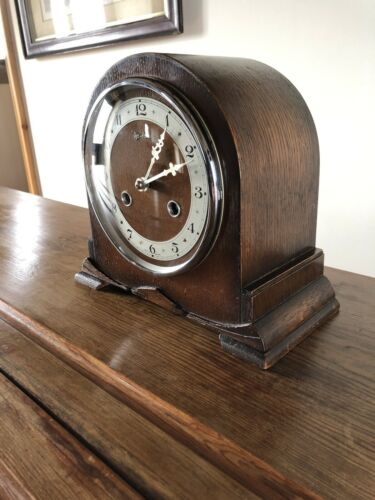 vintage art deco mantle clock. Bentima 8 Day Chiming . GWO C:-1940s + Key.