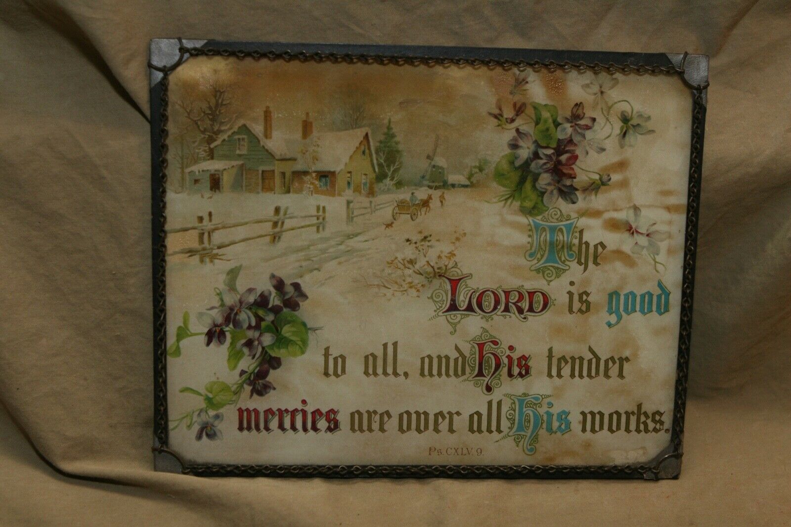 Title (ebay affiliate link): Antique Victorian Motto Print The Lord is Good PS CXLV9 Chain Frame Wavy Glass