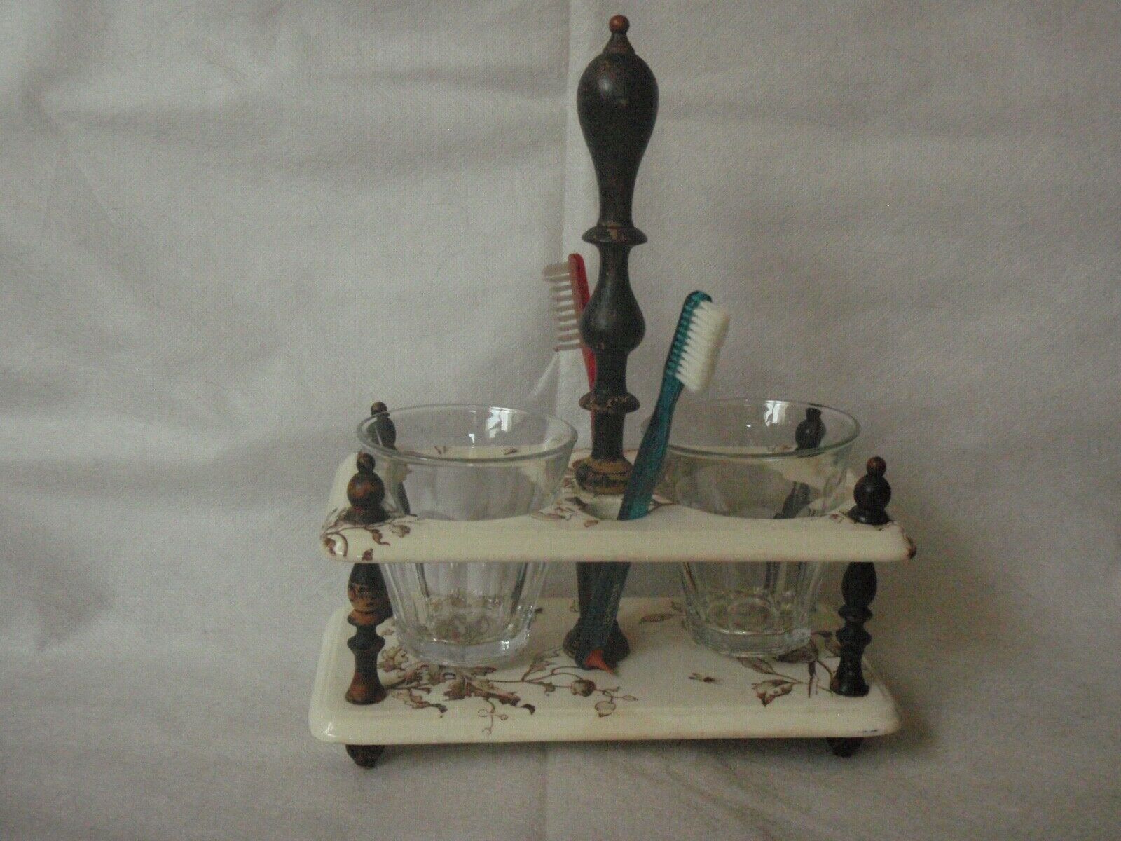 Faiencerie de Gien toothbrush holder brown transferware