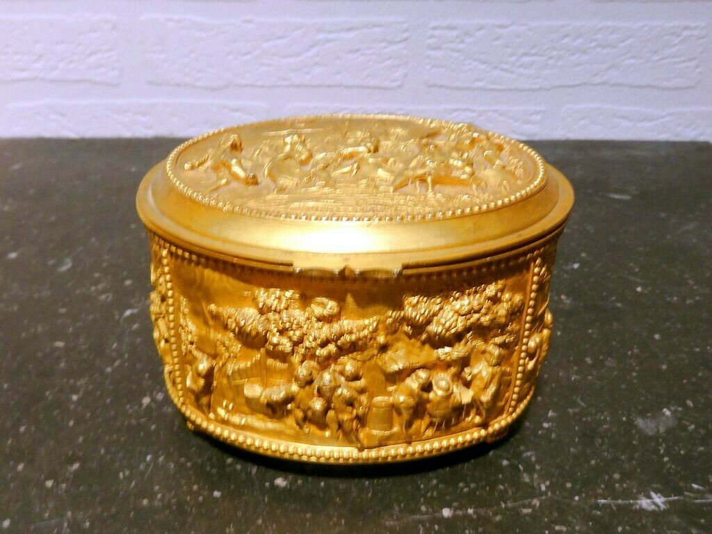ANTIQUE TRINKET BOX WITH FIGURAL / TAVERN SCENE