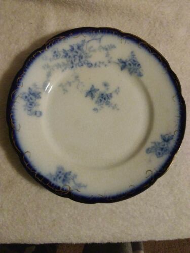 VINTAGE LABELLE CHINA FLOW BLUE COLLECTIBLE PLATE, GOLD RIM, FLORAL