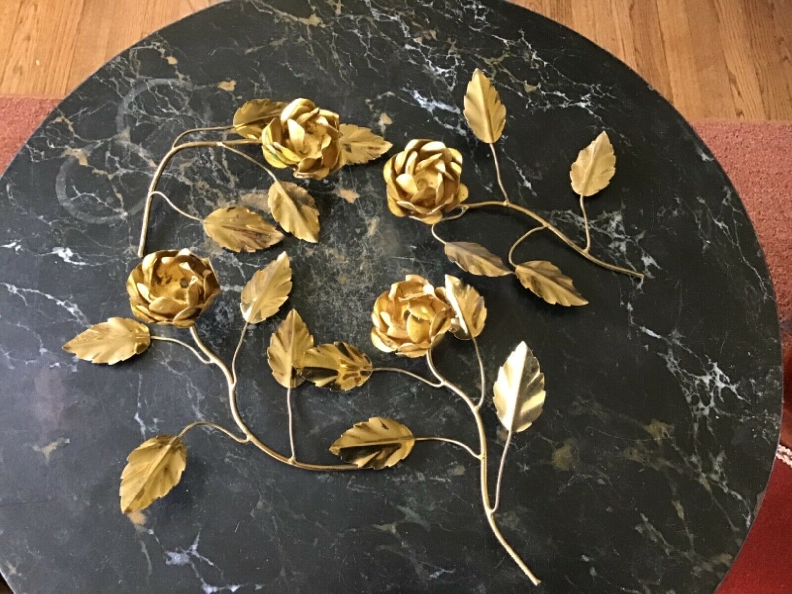 Vintage GILT GOLD HOLLYWOOD REGENCY ITALIAN TOLE ROSES DIY