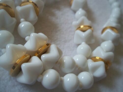 LOVELY vintage MIRIAM HASKELL milkglass beads, gold tone wafer beads NECKLACE