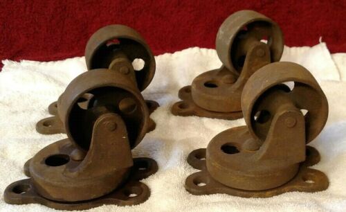 Set of 4 Antique Cast Iron Industrial Swivel Casters Steam Punk 2 3/8"
