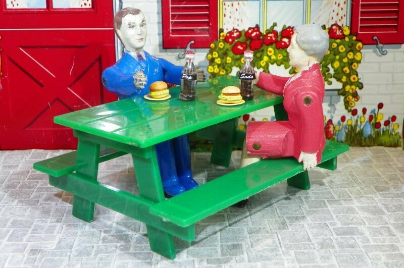 Renwal DOLLS Ideal PICNIC TABLE Vintage Tin Dollhouse Furniture Miniature