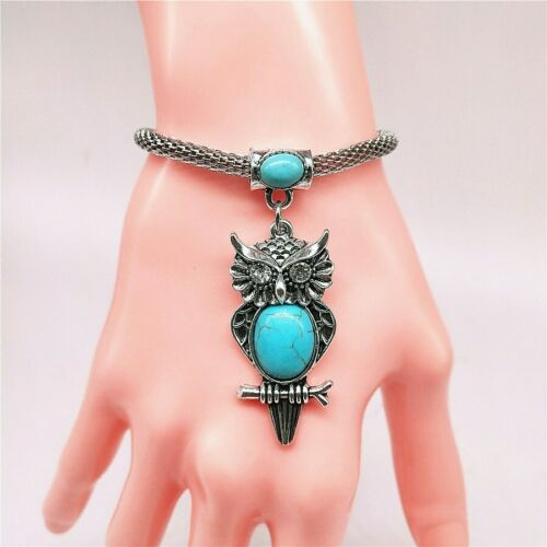 Fashion Jewelry Antique Silver Turquoise Pendant Rhinestone Bracelet Bangle W06