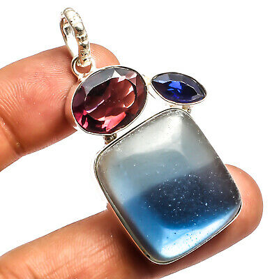 Antique Jewelry Blue Mystic Topaz Gemstone Silver Plated Jewelery Pendant 2.11"