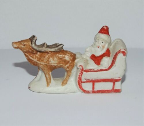 VINTAGE GERMAN BISQUE Santa Claus Reindeer Sleigh OLD CHRISTMAS VILLAGE FIGURINE