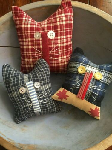 Primitive Old Home Cats Bowl Fillers Set of 3 Red White and Blue
